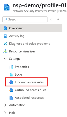 Правила входящего доступа могут позволить Интернету и ресурсам за пределами периметра подключаться к ресурсам внутри периметра. Периметр безопасности сети поддерживает два типа правил входящего доступа: