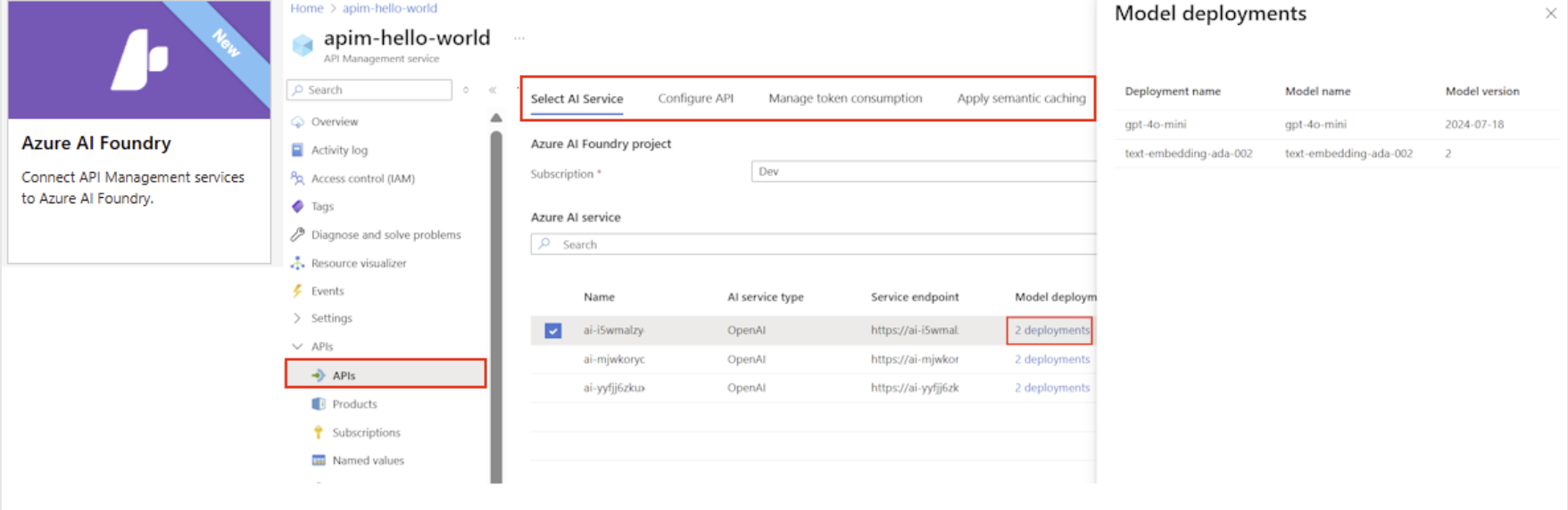 Например, чтобы подключить модель, развернутую в AI Foundry или другом поставщике, управление API предоставляет упрощенные мастера для импорта схемы и настройки проверки подлинности в конечную точку ИИ с помощью управляемого удостоверения, удаляя необходимость ручной настройки. В рамках того же пользовательского интерфейса можно предварительно настроить политики для обеспечения масштабируемости, безопасности и наблюдаемости API.