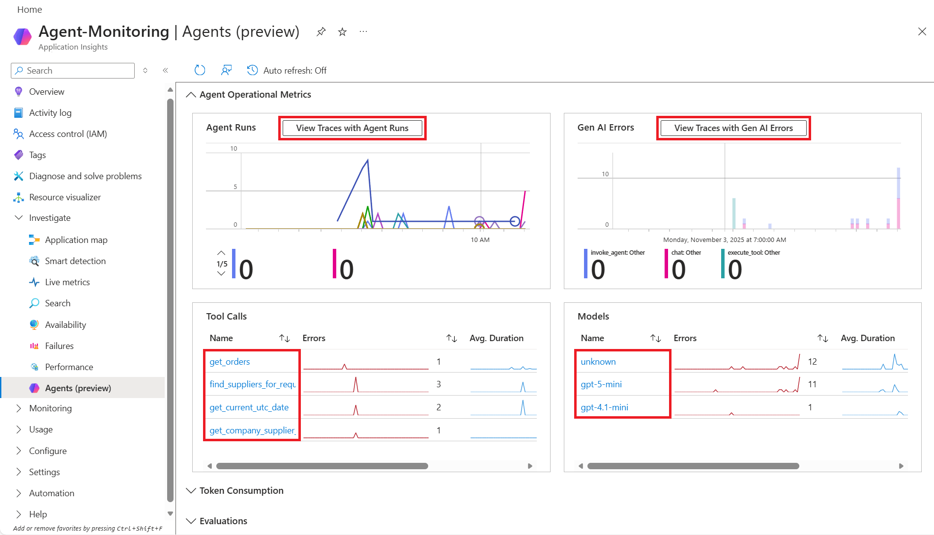 Эта функция объединяет данные телеметрии и диагностики, позволяя клиентам отслеживать производительность агента, анализировать использование маркеров и затраты, устранять ошибки и оптимизировать поведение агента.