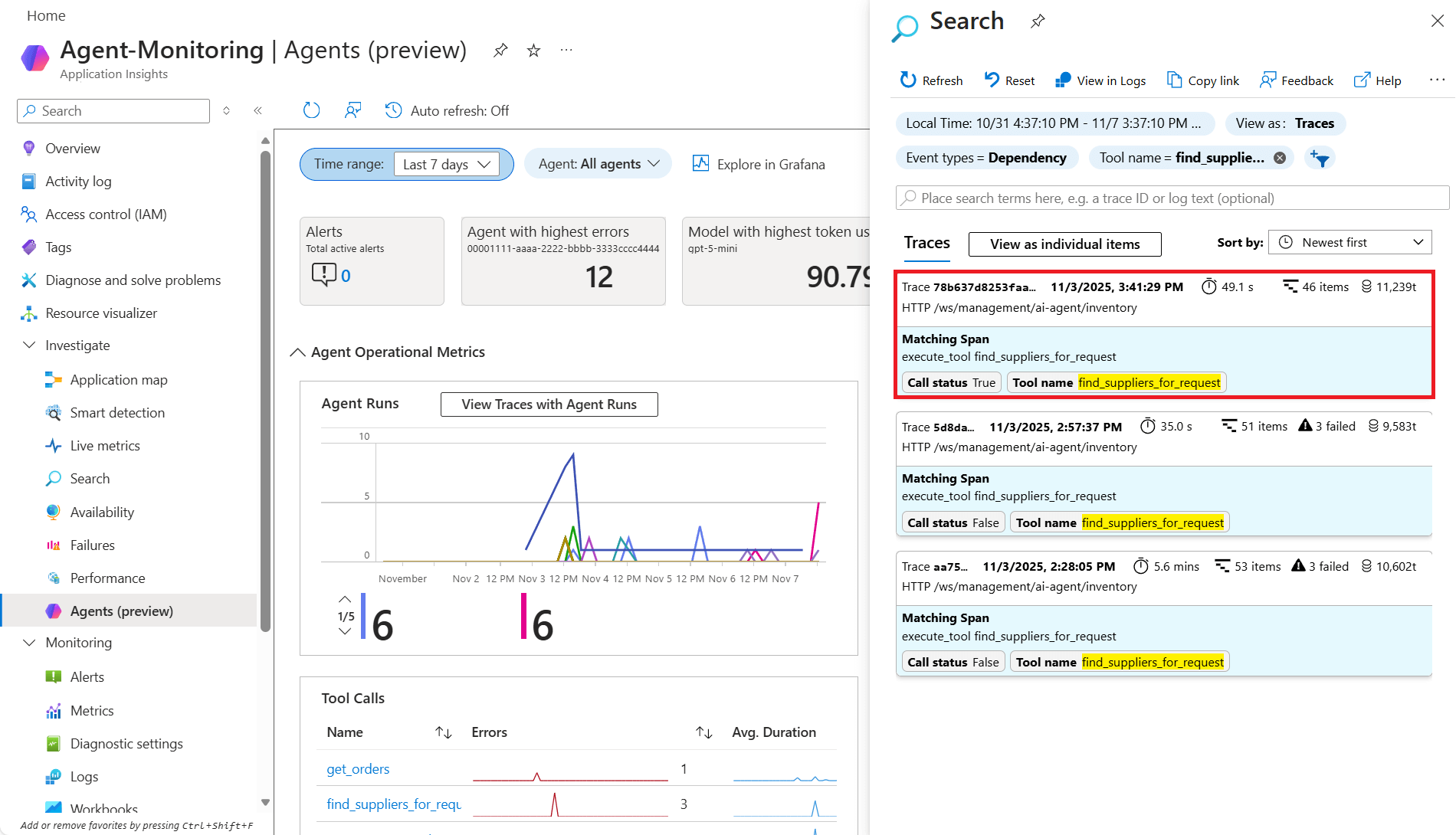 - Просмотр трассировок с помощью запусков агента — просмотр всех выполнений агента