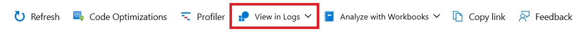 1. В представлении "Производительность,сбои" или "Поиск транзакций" выберите "Вид в журналах " в верхней панели навигации и выберите запрос в раскрывающемся меню.