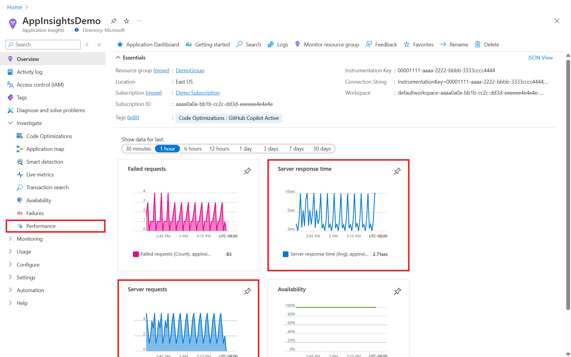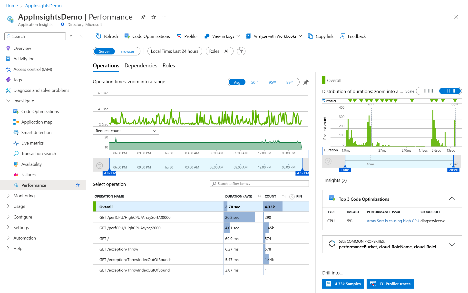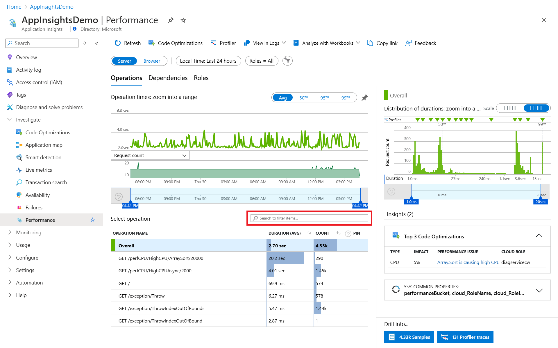 Изучение сбоев, производительности и транзакций с помощью Application Insights