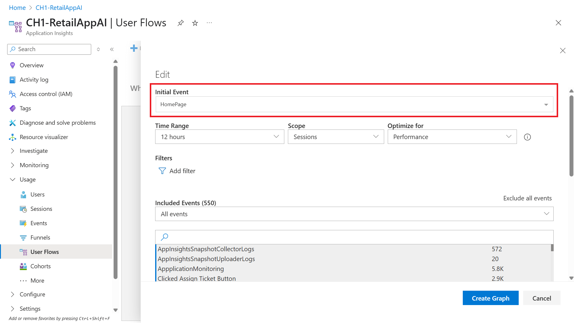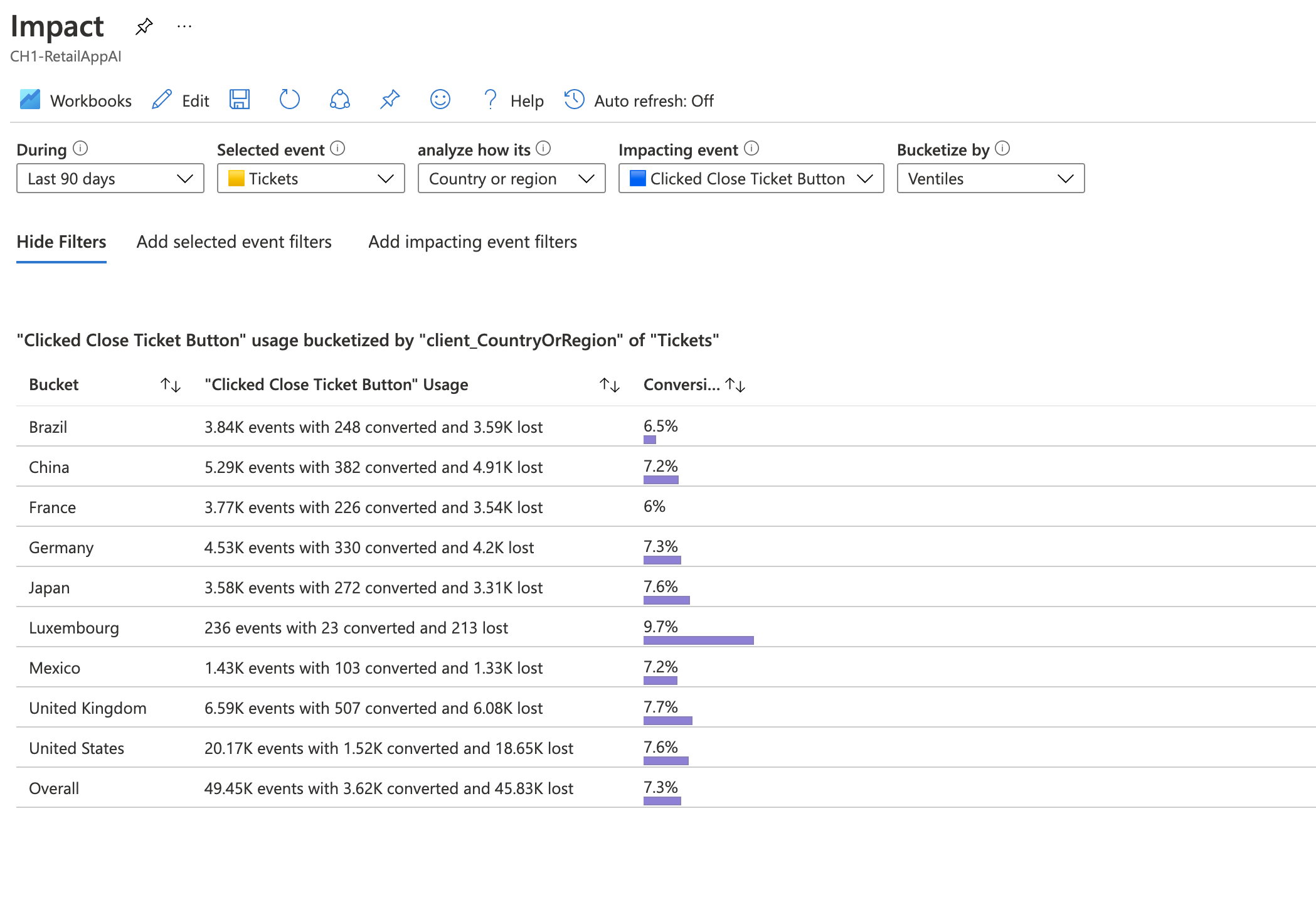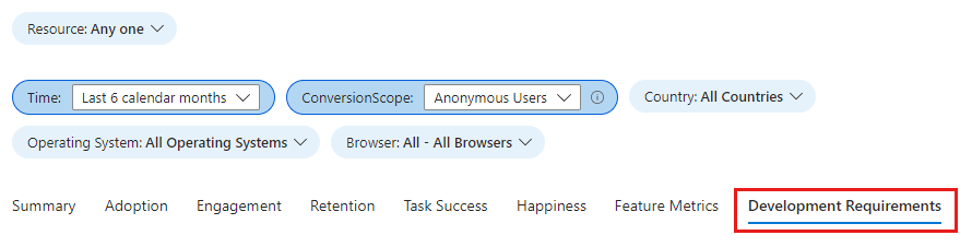 Если вы не установили контекст пользователя, прошедшего проверку подлинности, вы должны выбрать анонимных пользователей в раскрывающемся списке ConversionScope, чтобы просмотреть данные телеметрии.