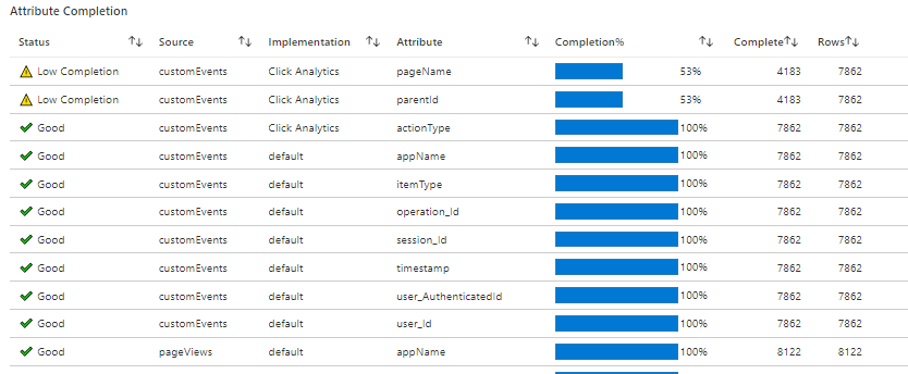 Источник Атрибут Описание customEvents идентификатор_аутентифицированного_пользователя Уникальный идентификатор пользователя, прошедшего проверку подлинности customEvents session_id Уникальный идентификатор сеанса customEvents appName Уникальный идентификатор приложения Application Insights customEvents Тип элемента Категория записи customEvents customEvents метка времени Дата и время события customEvents идентификатор_операции Корреляция событий телеметрии customEvents user_Id Уникальный идентификатор пользователя customEvents ¹ parentId Имя функции customEvents ¹ имя страницы Имя страницы customEvents ¹ тип действия Категория записи Click Analytics просмотры страницы идентификатор_аутентифицированного_пользователя Уникальный идентификатор пользователя, прошедшего проверку подлинности просмотры страницы session_id Уникальный идентификатор сеанса просмотры страницы appName Уникальный идентификатор приложения Application Insights просмотры страницы метка времени Дата и время события просмотры страницы идентификатор_операции Корреляция событий телеметрии просмотры страницы user_Id Уникальный идентификатор пользователя ¹. Чтобы использовать эти атрибуты, примените плагин автоколлекции Click Analytics через npm.
