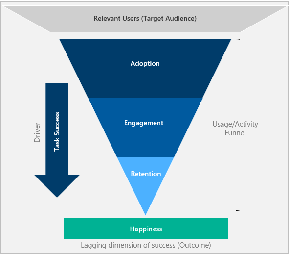 - Успех выполнения задач является фактором, который продвигает пользователей по воронке от этапа принятия к этапу удержания.