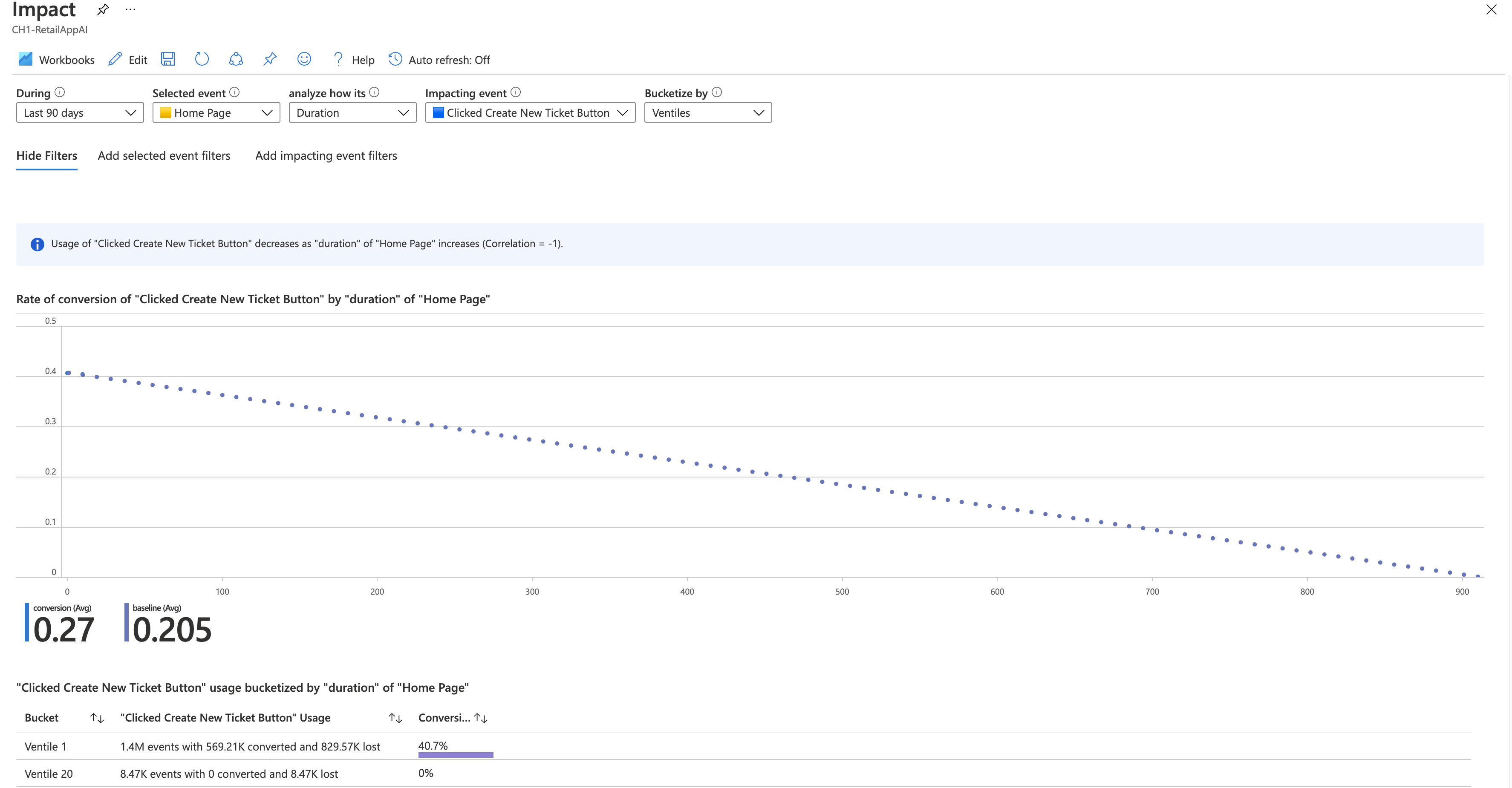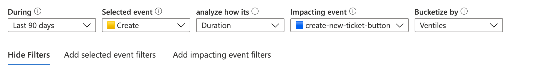 Инструмент Impact поддерживает стандартные и настраиваемые свойства и измерения. Используйте что угодно. Вместо длительности используйте фильтры по основным и дополнительным событиям, чтобы уточнить получаемые данные.