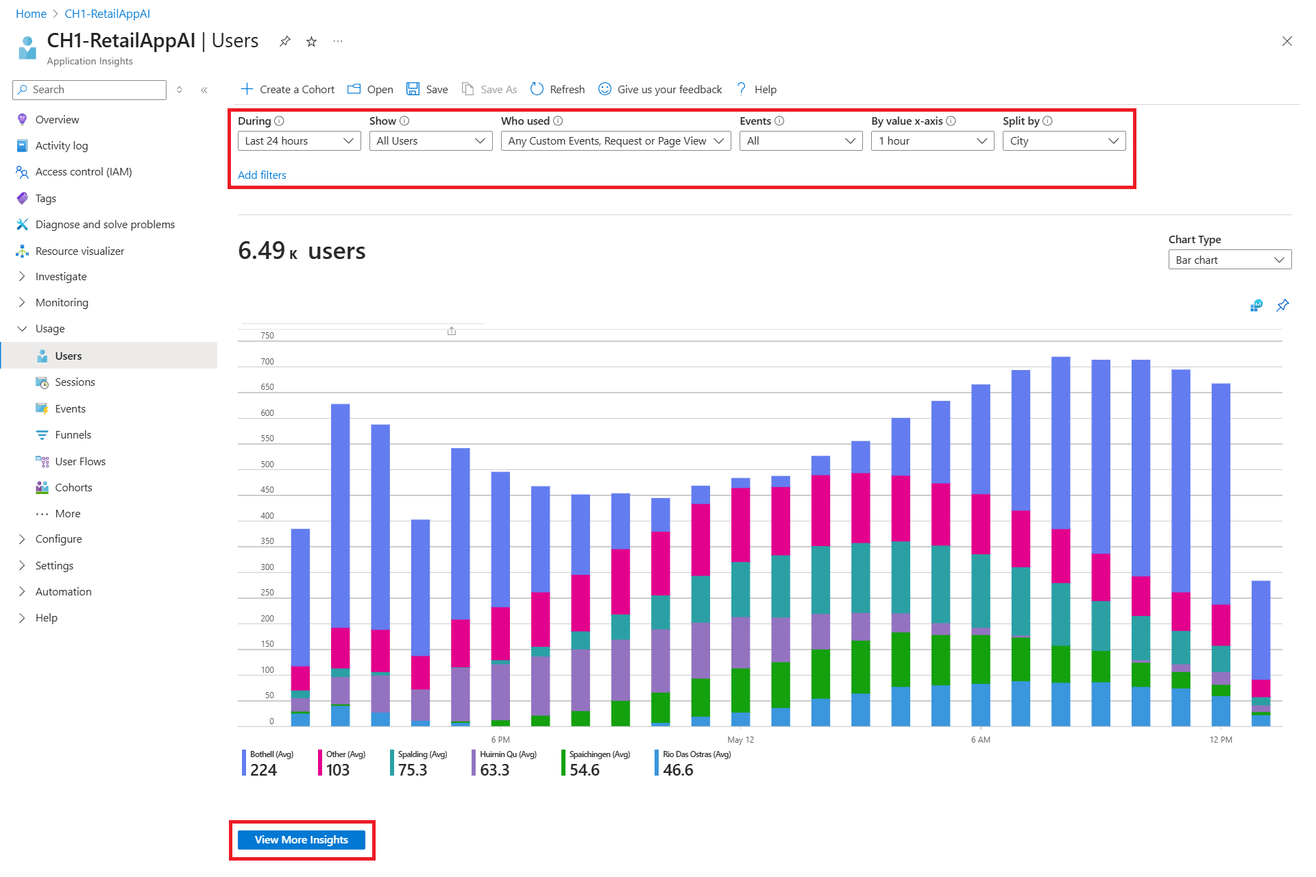 Application Insights — это мощное средство наблюдения, которое собирает данные телеметрии, чтобы показать, как пользователи взаимодействуют с приложением. Сюда входят сведения о наиболее популярных функциях, если пользователи достигают своих целей, где они удаляются, и о том, возвращаются ли они позже.