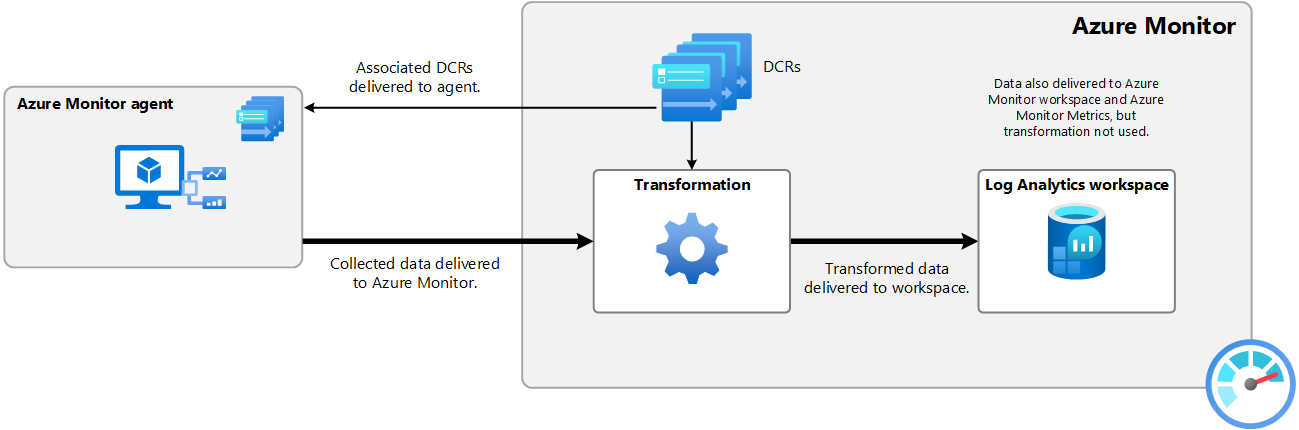 Правила сбора данных (DCR) являются частью процесса извлечения, преобразования и загрузки (ETL), который улучшает устаревшие методы сбора данных для Azure Monitor. Этот процесс использует общую стратегию приема данных для всех источников данных и стандартный метод конфигурации, который является более управляемым и масштабируемым, чем предыдущие методы сбора.