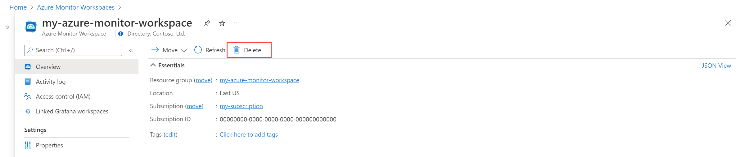 Удаление рабочей области Azure Monitor