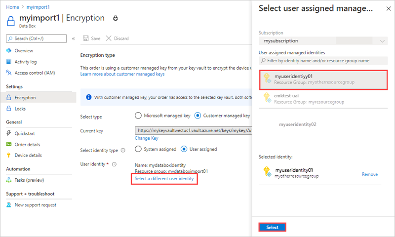 Чтобы включить управляемый клиентом ключ для существующего заказа Data Box на портале Azure, выполните следующие действия.