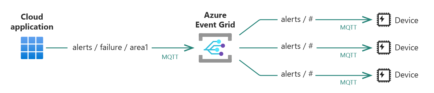 Трансляция оповещений в парк клиентов с помощью шаблона обмена сообщениями "один ко многим ". Например, используйте сетку событий для отправки оповещений из облачного приложения на несколько устройств Интернета вещей. Этот шаблон позволяет приложению публиковать только одно сообщение, которое служба реплицирует для каждого интересующего клиента.