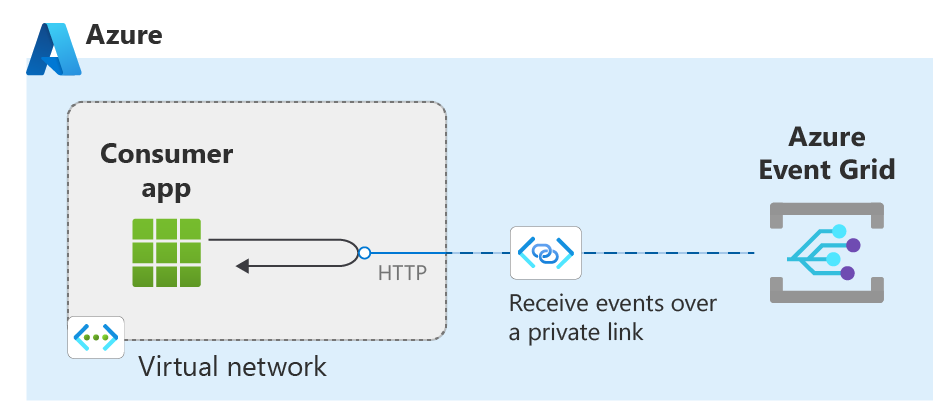 Вы можете настроить частные ссылки для подключения к Сетка событий Azure для публикации и чтения CloudEvents через частную конечную точку в виртуальной сети. Трафик между виртуальной сетью и сеткой событий передает магистральную сеть Майкрософт.