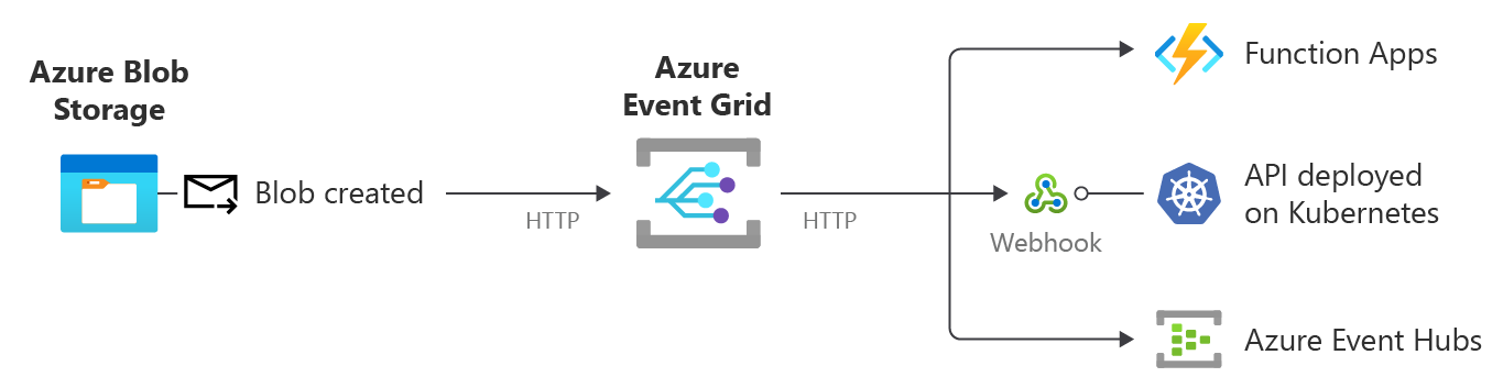 Сетка событий может получать события из 20 служб Azure, чтобы автоматизировать операции. Например, вы можете настроить сетку событий для получения события при создании нового большого двоичного объекта в учетной записи служба хранилища Azure, чтобы подчиненное приложение могло считывать и обрабатывать его содержимое. Список всех поддерживаемых служб и событий Azure см. в разделе "Системные разделы".
