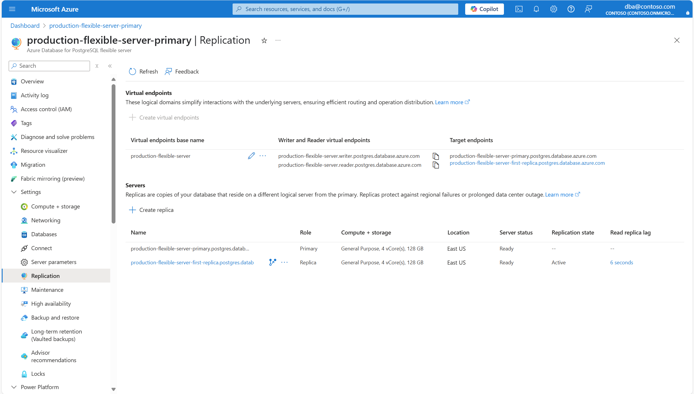 Выберите экземпляр гибкого сервера Azure Database для PostgreSQL, для которого требуется удалить реплику чтения.
