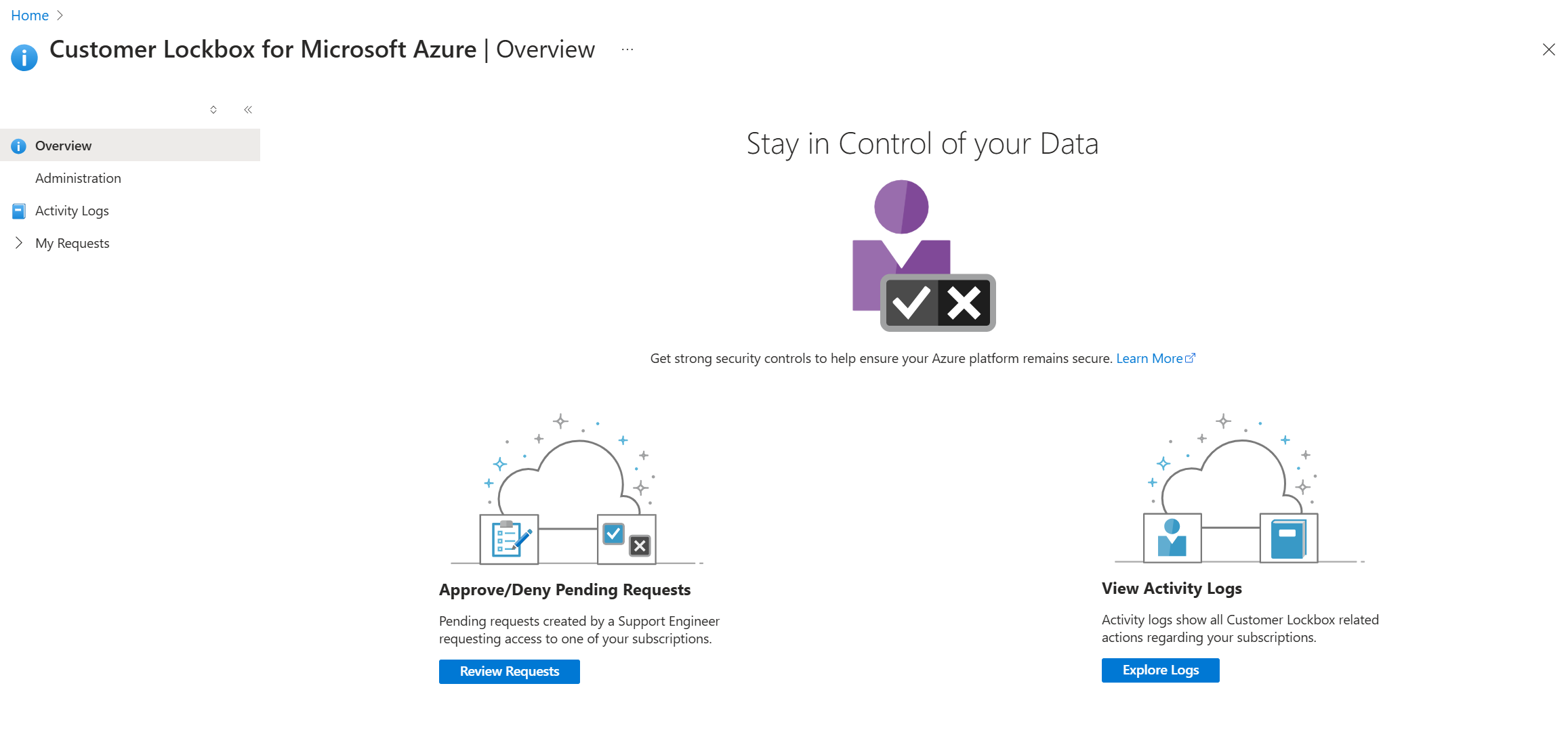 Вкладка "История" в портале Azure Lockbox была удалена из-за имеющихся технических ограничений. Чтобы просмотреть историю запросов Customer Lockbox, используйте журнал действий для запросов на уровне подписки и журнал аудита Entra для запросов на уровне арендатора.