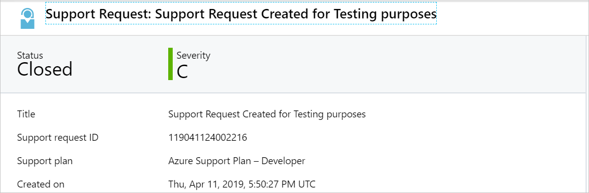Указанный утверждающий может также выбрать ИДЕНТИФИКАТОР ЗАПРОСА НА ОБСЛУЖИВАНИЕ, чтобы просмотреть запрос в службу поддержки, созданный исходным пользователем. Эта информация предоставляет контекст, почему задействована служба поддержки Майкрософт, и историю сообщаемой проблемы. Например: