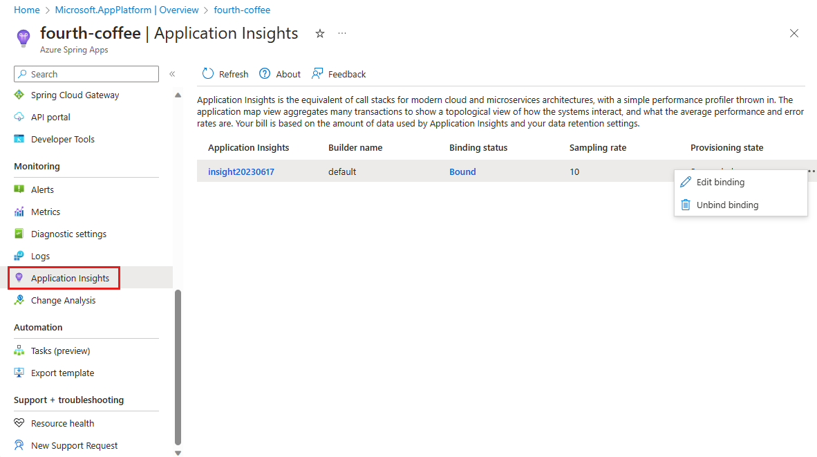 За использование Application Insights в паре с Azure Spring Apps взимается плата.