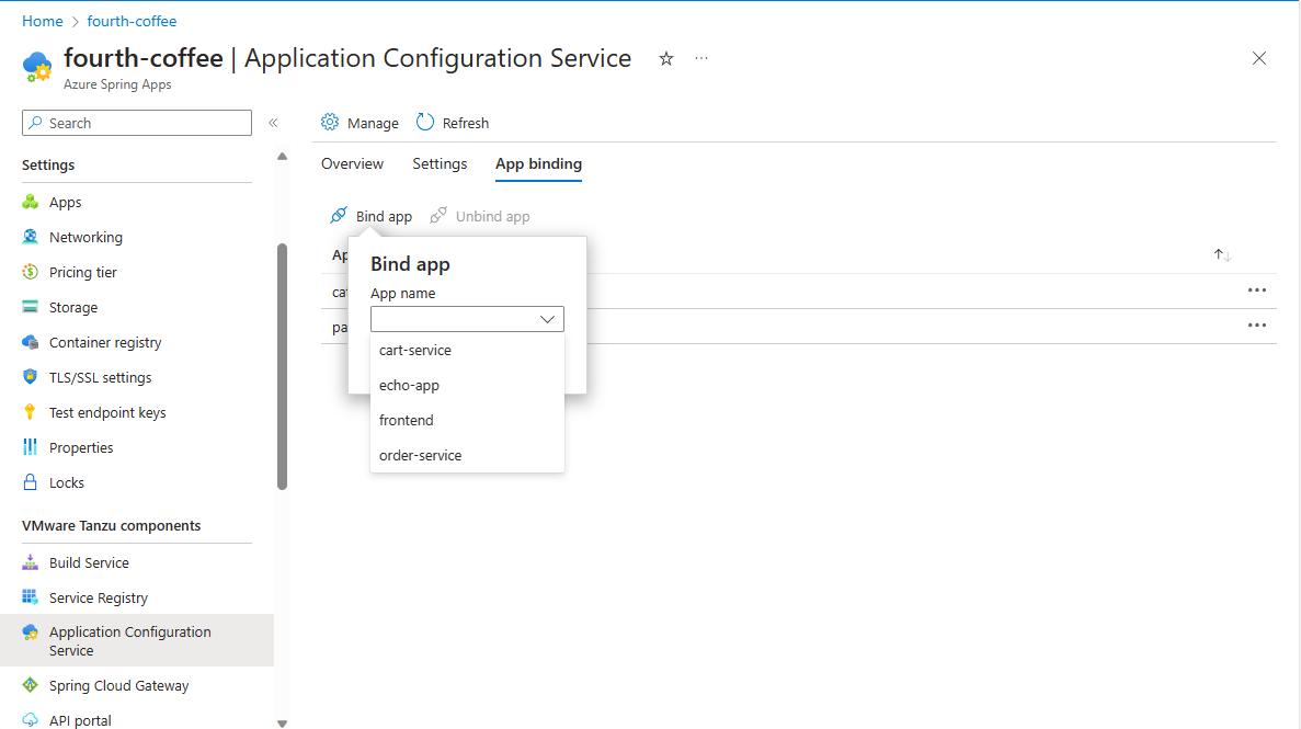 Привязка приложений к службе конфигурации приложений для Tanzu