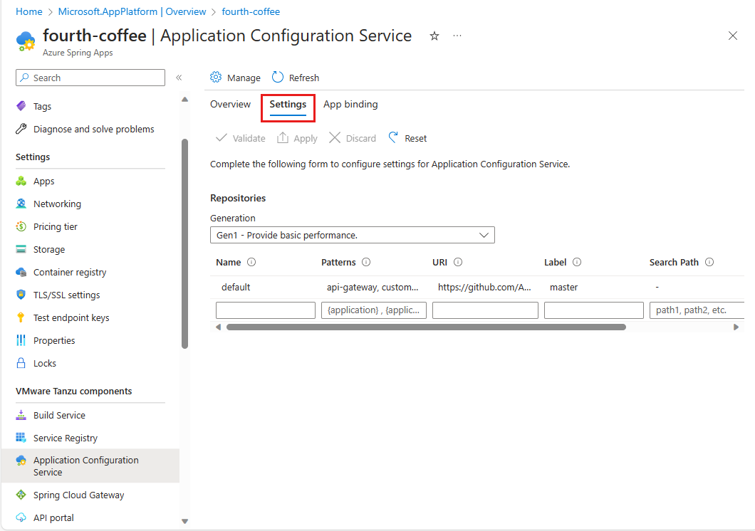 Дополнительные сведения см. в статье Использование службы конфигурации приложений для Tanzu.