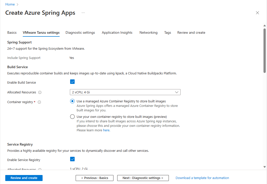 Чтобы использовать компоненты Tanzu, их необходимо включить при создании экземпляра сервиса Azure Spring Apps. На данный момент нельзя включить их после настройки.