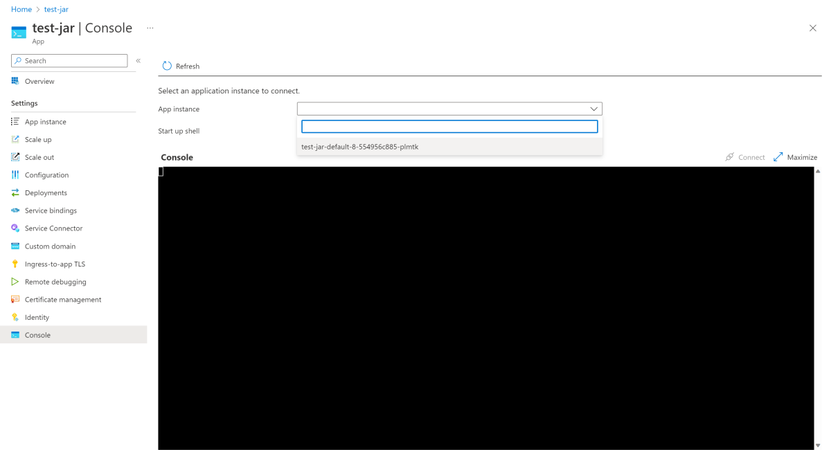 Вы можете подключиться к экземпляру приложения с помощью портал Azure или Azure CLI.
