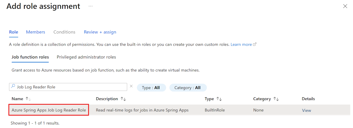 | Роль читателя журнала заданий Azure Spring Apps | Microsoft.AppPlatform/Spring/jobs/executions/logstream/action Microsoft.AppPlatform/Spring/jobs/executions/listInstances/action |