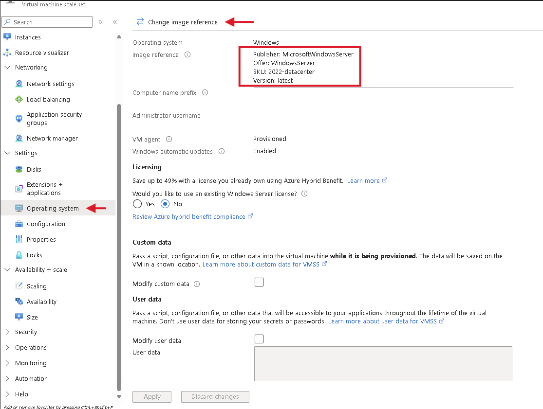 Изменение образа операционной системы набора виртуальных машин пересоздает диски ОС для всех экземпляров виртуальных машин из нового образа. Это изменение означает, что все данные или пользовательские конфигурации, хранящиеся на текущих дисках ОС, теряются после обновления. Перед продолжением убедитесь, что необходимо создать резервную копию любой важной информации.