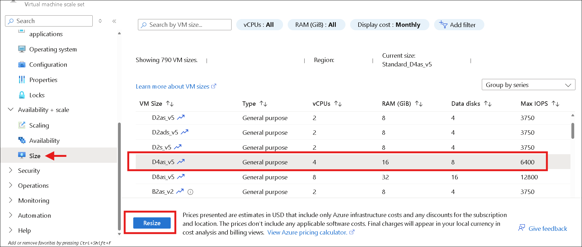 SizeразделAvailability + scale.> Измените размер масштабируемого набора, если текущее семейство размеров не поддерживается с конфигурацией безопасности доверенного запуска —> нажмите кнопку "Применить".