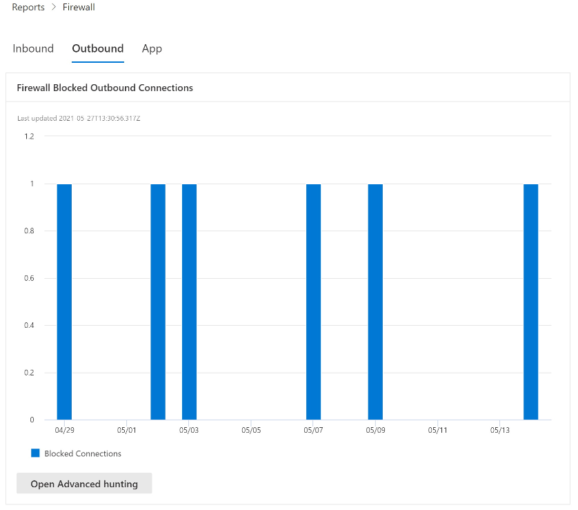 Теперь администраторы могут просматривать действия брандмауэра узла Windows здесь. Дополнительные отчеты можно упростить, скачав скрипт пользовательских отчетов для мониторинга действий брандмауэра Защитника Windows с помощью Power BI.