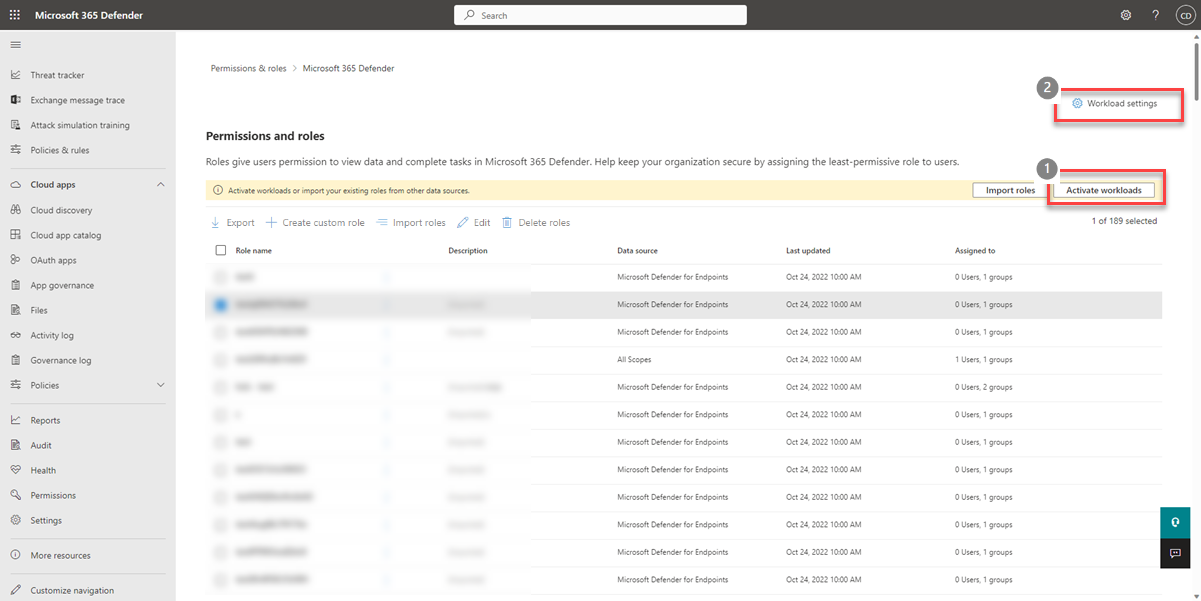 Ниже описано, как активировать модель Microsoft Defender XDR unified RBAC. Вы можете активировать рабочие нагрузки следующими способами: