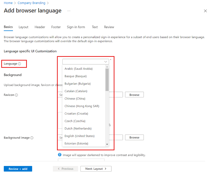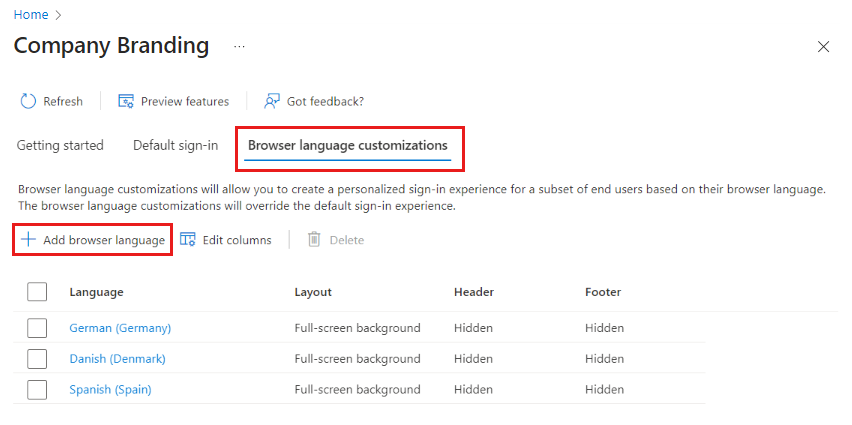 В этой статье объясняется, как настроить язык браузера для взаимодействия с проверкой подлинности приложения. Персоналив процесс входа на основе языка браузера, вы можете предоставить специализированный интерфейс для пользователей и переопределить параметры фирменной символики по умолчанию.