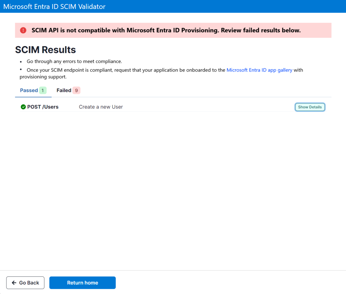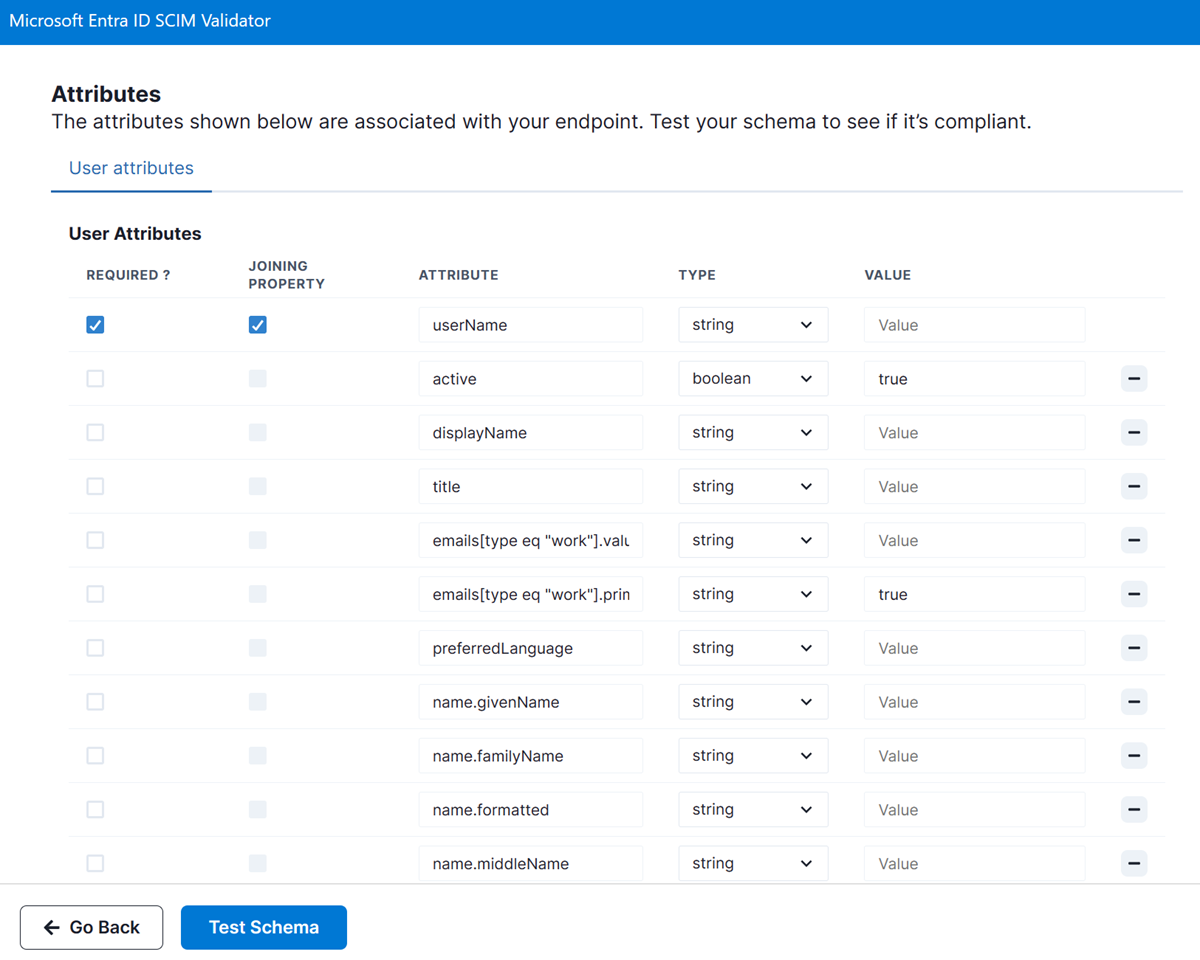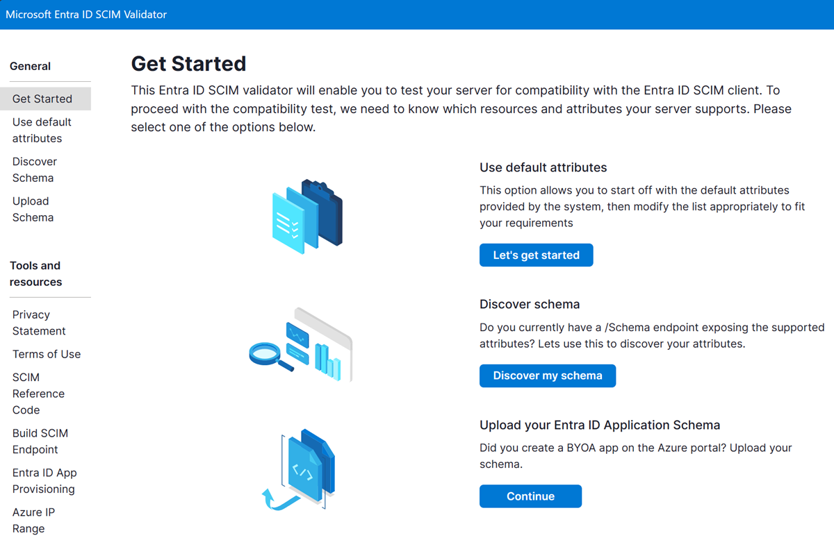 Откройте браузер и перейдите к проверяющему элементу управления: https://scimvalidator.microsoft.com/.