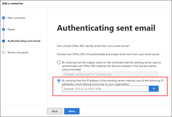 Если не удается настроить соединитель на основе сертификата, настройте соединитель на основе IP-адресов для ретрансляции электронной почты через Microsoft 365 или Office 365.