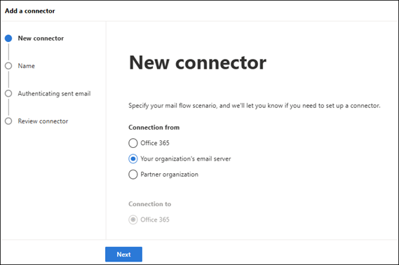- Соединитель. Настройте входящий соединитель в Microsoft 365 или Office 365, как описано в этом разделе.
