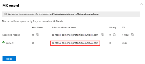 Приложение. Найдите запись MX для выбранного принятого домена в Microsoft 365 или Office 365