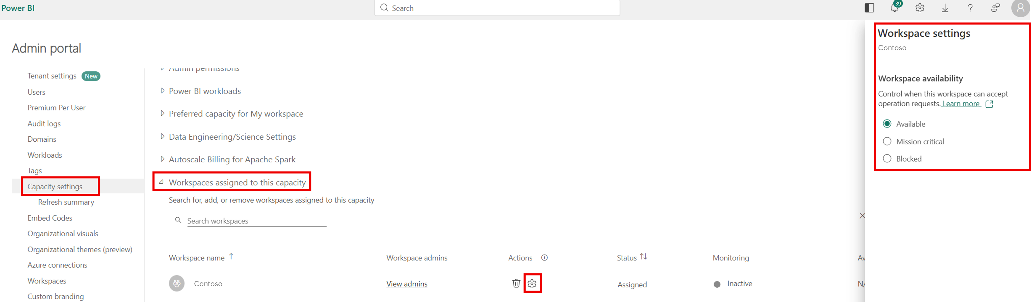 Перейдите на Портал администрирования → Параметры емкости → выберите Fabric Capacity.