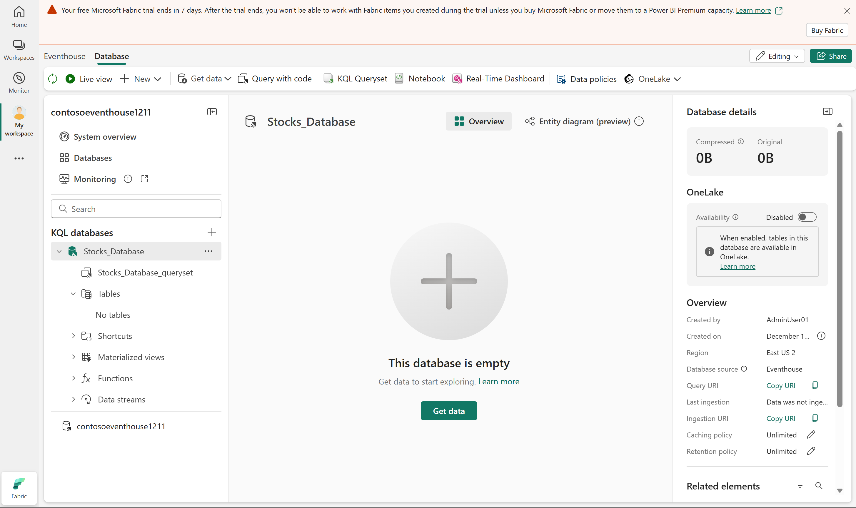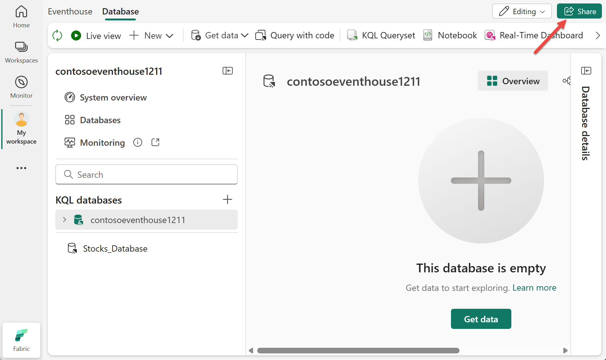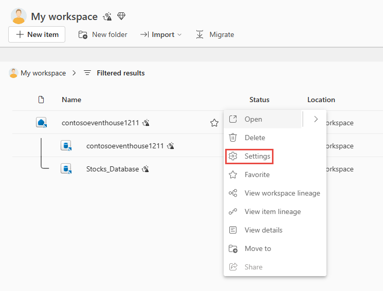 Перейдите к элементу eventhouse в вашей рабочей области.