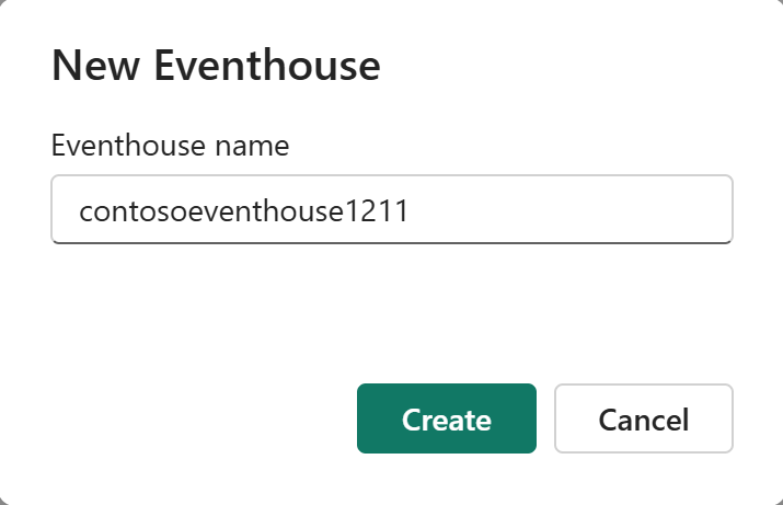 И событийный дом и его дочерний объект база данных Kusto Query Language (KQL) создаются с одинаковым именем. Имя базы данных, как и все элементы в Fabric, можно переименовать в любое время.