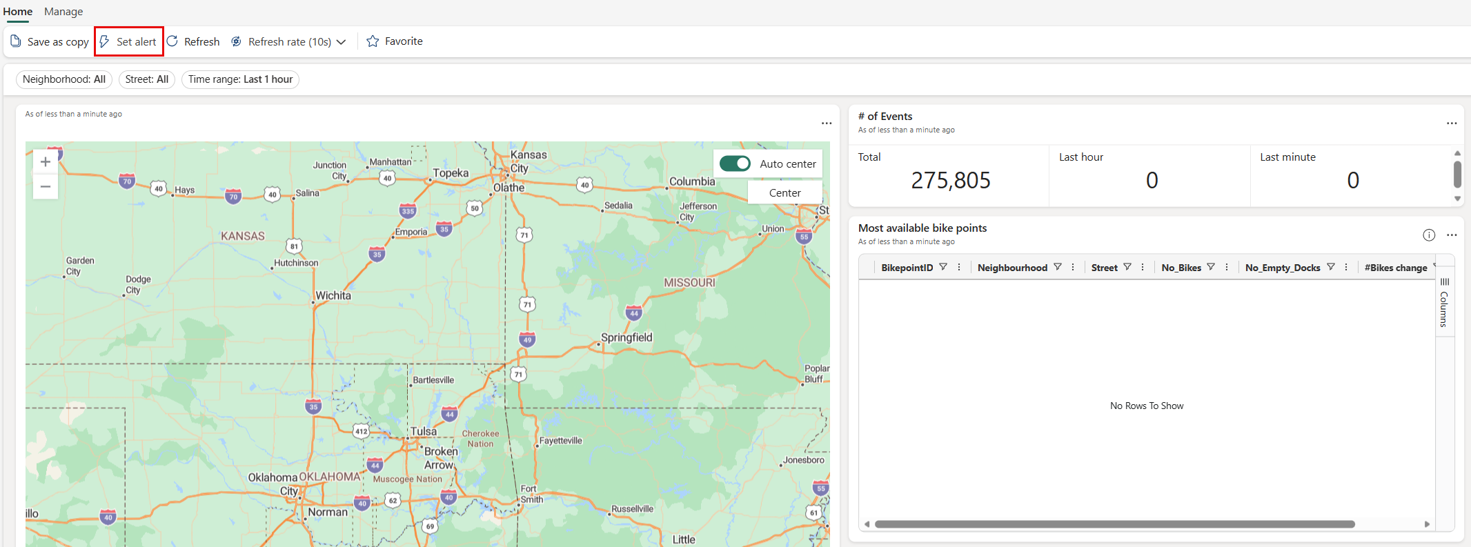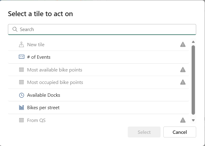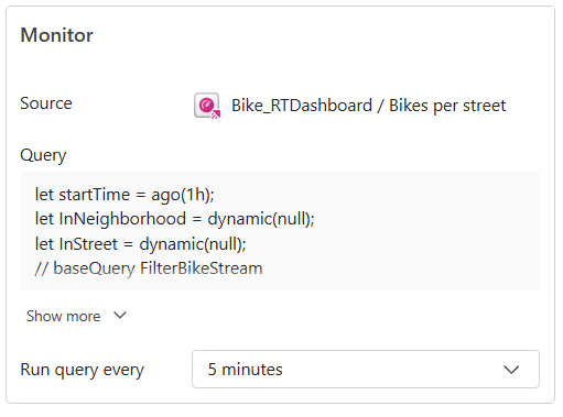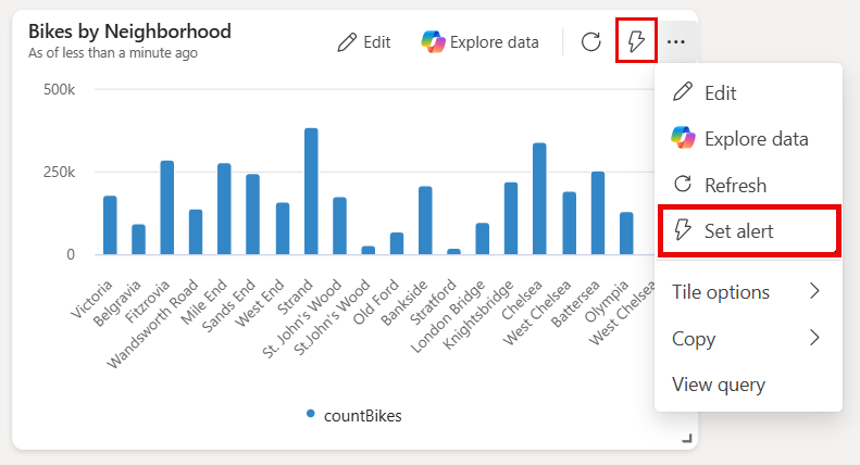 Используйте Активатор, чтобы включать уведомления при выполнении условий на панели мониторинга в реальном времени. Например, если у вас есть панель мониторинга реального времени, отображающая доступность велосипедов для найма в нескольких местах, можно активировать оповещение, если в любом месте доступно слишком мало велосипедов. Отправьте уведомления об оповещениях самостоятельно или другим пользователям в вашей организации с помощью электронной почты или Microsoft Teams.