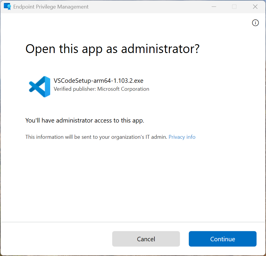 Поддержка утверждена. Для поддержки утвержденных правил конечные пользователи должны отправить запрос на запуск приложения с повышенными разрешениями. После отправки запроса администратор может утвердить его. После утверждения запроса пользователь получает уведомление о том, что он может повторить повышение прав на устройстве. Дополнительные сведения об использовании этого типа правила см. в разделе Поддержка утвержденных запросов на повышение прав.