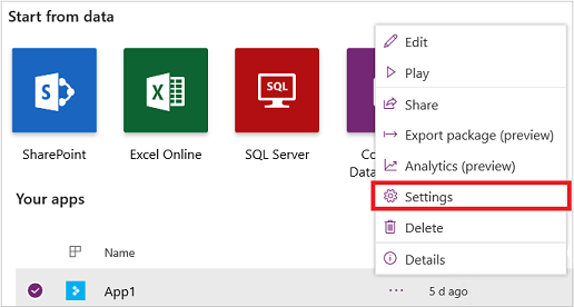 Выберите приложение в Power Apps.
