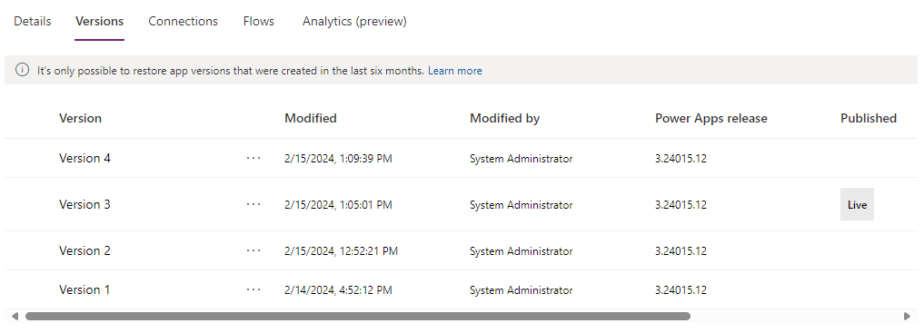 Версия Рабочий экземпляр публикуется для всех пользователей, которым предоставлен общий доступ к приложению. Только пользователи с разрешениями на редактирование могут использовать последнюю версию приложения.