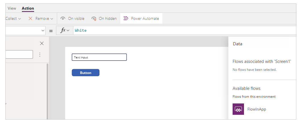OnSelectкнопки, имеющему сложную формулу, добавление потока очищает эту формулу. Убедитесь, что вы сделали копию формулы перед добавлением потока. Однако это поведение отличается при добавлении потока с включенной панелью Power Automate. Подробнее см. в разделе Ссылка на поток.В качестве альтернативы, если вы включили предварительную версию функции Включение панели Power Automate, вы можете выбрать свой поток в левой области в Power Apps Studio.