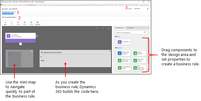 Откроется конструктор бизнес-правил. Следующий шаг: Установите свойства бизнес-правила