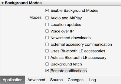 Дважды щелкните Info.plist, чтобы открыть его, а затем включите RemoteNotifications в Background Modes.