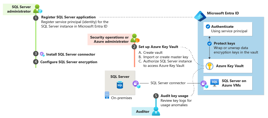 Соединитель SQL Server для Azure Key Vault позволяет шифрованию SQL Server использовать службу Azure Key Vault в качестве поставщика расширенного управления ключами (EKM) для защиты ключей шифрования SQL Server.